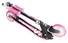 Løbehjulet er udstyret med en ergonomisk, skridsikker ståplade, som giver et sikkert fodfæste under kørsel. Styret kan justeres i højden, så løbehjulet kan tilpasses barnets størrelse og bruges over længere tid. Den sikre foldemekanisme gør det nemt at folde løbehjulet sammen, når det skal transporteres eller opbevares.
